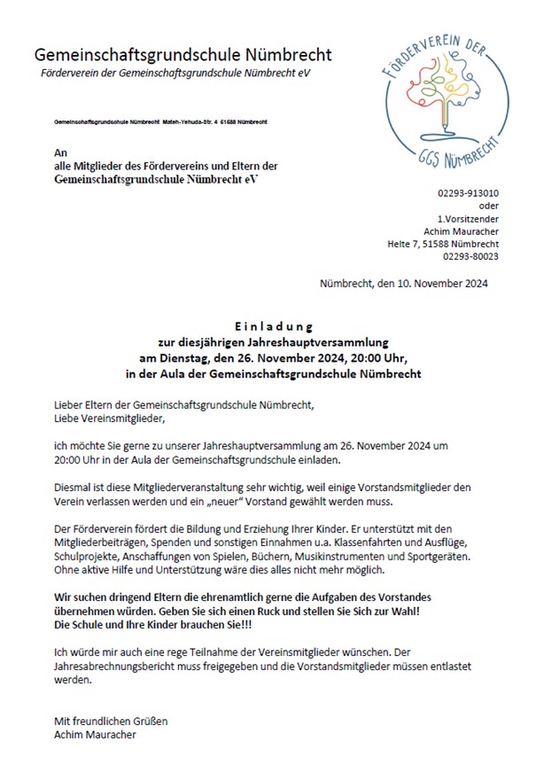 Einladung zur Jahreshauptversammlung des Fördervereins